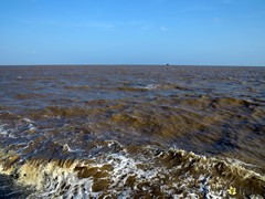 Notre première rencontre avec la mer de Chine qui ce jour là n'avait pas des couleurs très avenante à notre égard